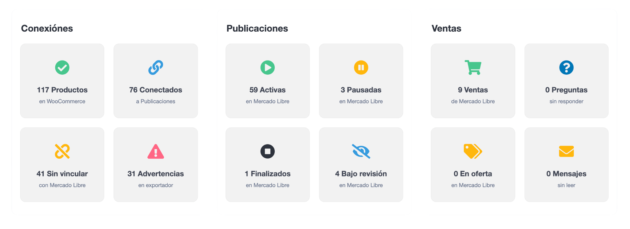 Exporte, importe e sincronize seu catálogo WooCommerce com o Mercado Livre de forma rápida e fácil. Centralize suas vendas, perguntas e mensagens e torne seu negócio mais eficiente.